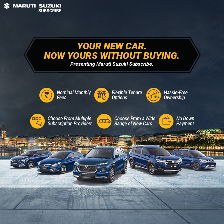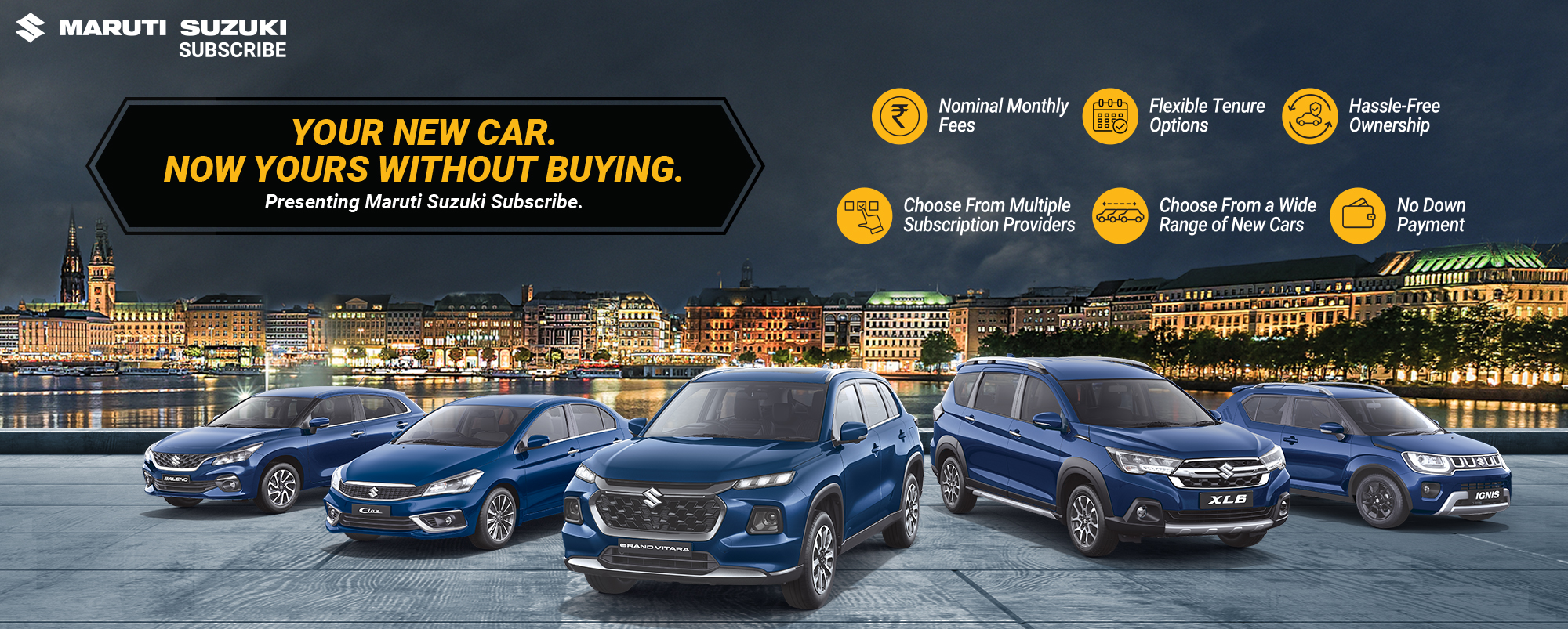 Maruti Suzuki Subscribe enables all customers to enjoy driving their preferred Maruti Suzuki cars without having to deal with all the financial responsibilities that come with owning a car.All you need to do is opt for a monthly subscription plan at a fixed monthly fee, which includes the routine maintenance and insurance costs, and choose a flexible tenure. At Technoy Motors in, Bhilwara Road, Chittorgarh, all Hatchback, Sedan, SUV, the MUV models line-up includes Baleno, Invicto, EVitara, Jimny, Ciaz, Ignis, Fronx, Grand Vitara, XL6. Here, you will enjoy Maruti Suzuki Subscribe benefits such as: